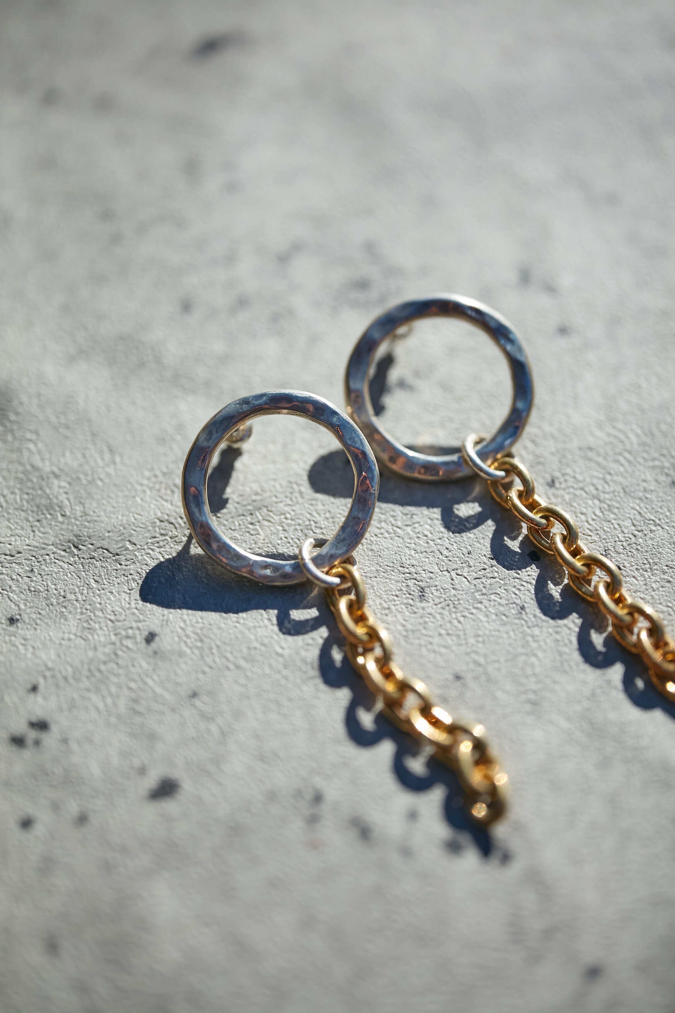 SilverのcircleにNew yorkで買い付けたGold chainを融合させたdesign.